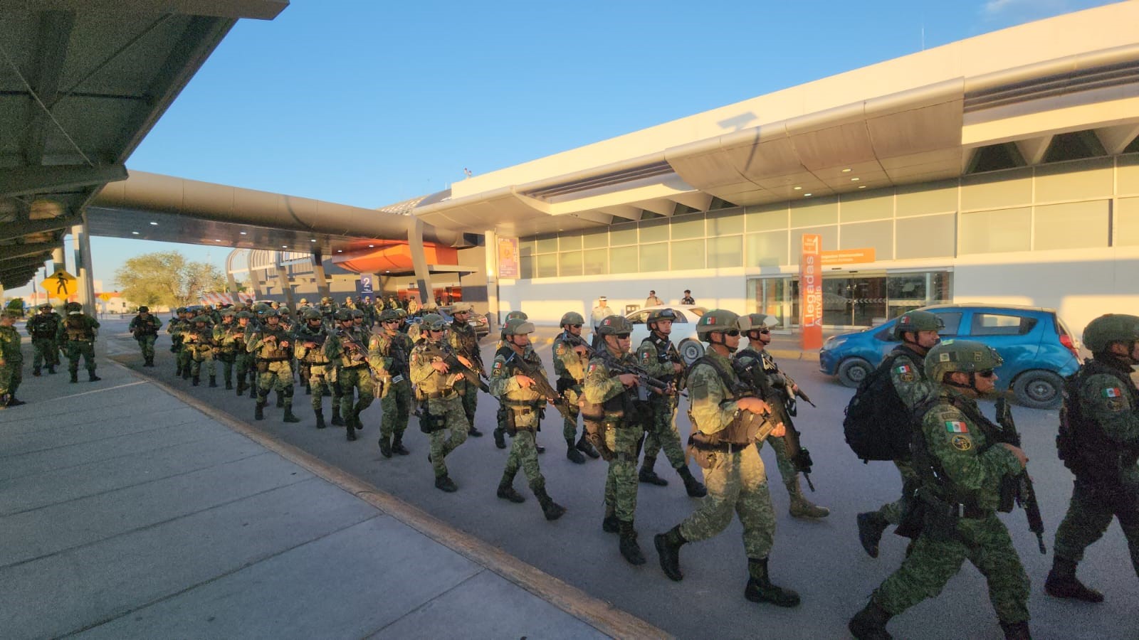 El personal militar llegó la tarde del 23 de noviembre de 2025 a bordo de un avión Boeing 727 de transporte pesado de la Guardia Nacional al Aeropuerto Internacional de Chihuahua “General Roberto Fierro Villalobos”, procedente de la Base Aérea Militar No. 19, en la Ciudad de México.