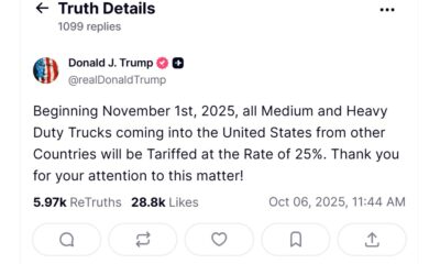 El presidente de Estados Unidos, Donald Trump, confirmó que a partir del 1 de noviembre de 2025 se aplicará un arancel del 25 por ciento a...