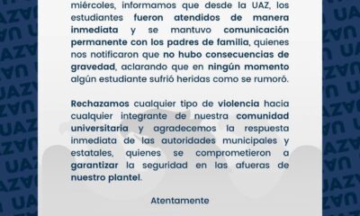 La Universidad Autónoma de Zacatecas (UAZ) emitió un comunicado oficial luego de los hechos ocurridos el pasado miércoles en las inmediaciones de la Preparatoria II, donde...