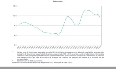 El Instituto Nacional de Estadística y Geografía (INEGI) informó que la tasa semestral de homicidios en México se redujo a 11.1 por cada 100 mil habitantes...