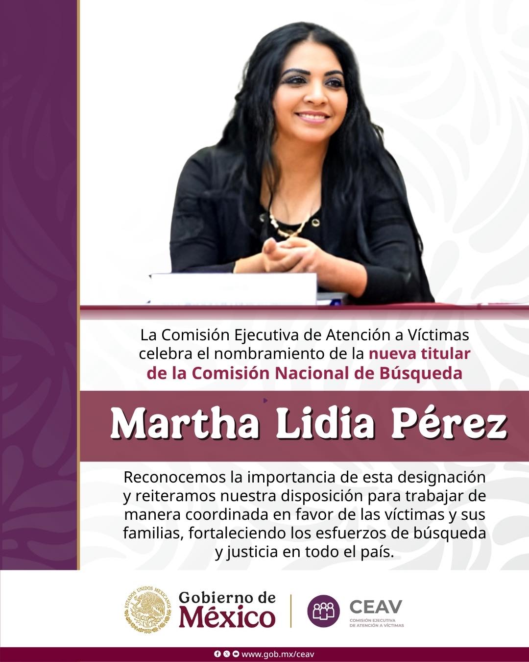 La Secretaría de Gobernación informó este jueves que Martha Lidia Pérez Gumercindo fue designada como la nueva titular de la Comisión Nacional de Búsqueda de Personas (CNB), en medio de la crisis nacional por más de 133 mil personas desaparecidas en el país.